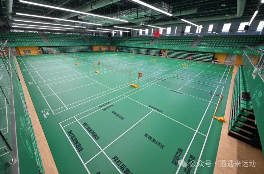 通州体育场篮羽馆总建筑面积约1900平方米,包含12片羽毛球场,也可转换为1片室内标准篮球场。