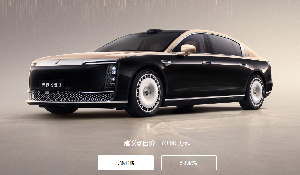 另一家对超豪车进行布局的,是华为和江淮汽车采用鸿蒙智行模式合作推出的汽车品牌尊界。今年5月30日,尊界推出了旗下首款车型S800,定价70.8万元-101.8万元,宣称要打造“中国人自己的百万豪车”。